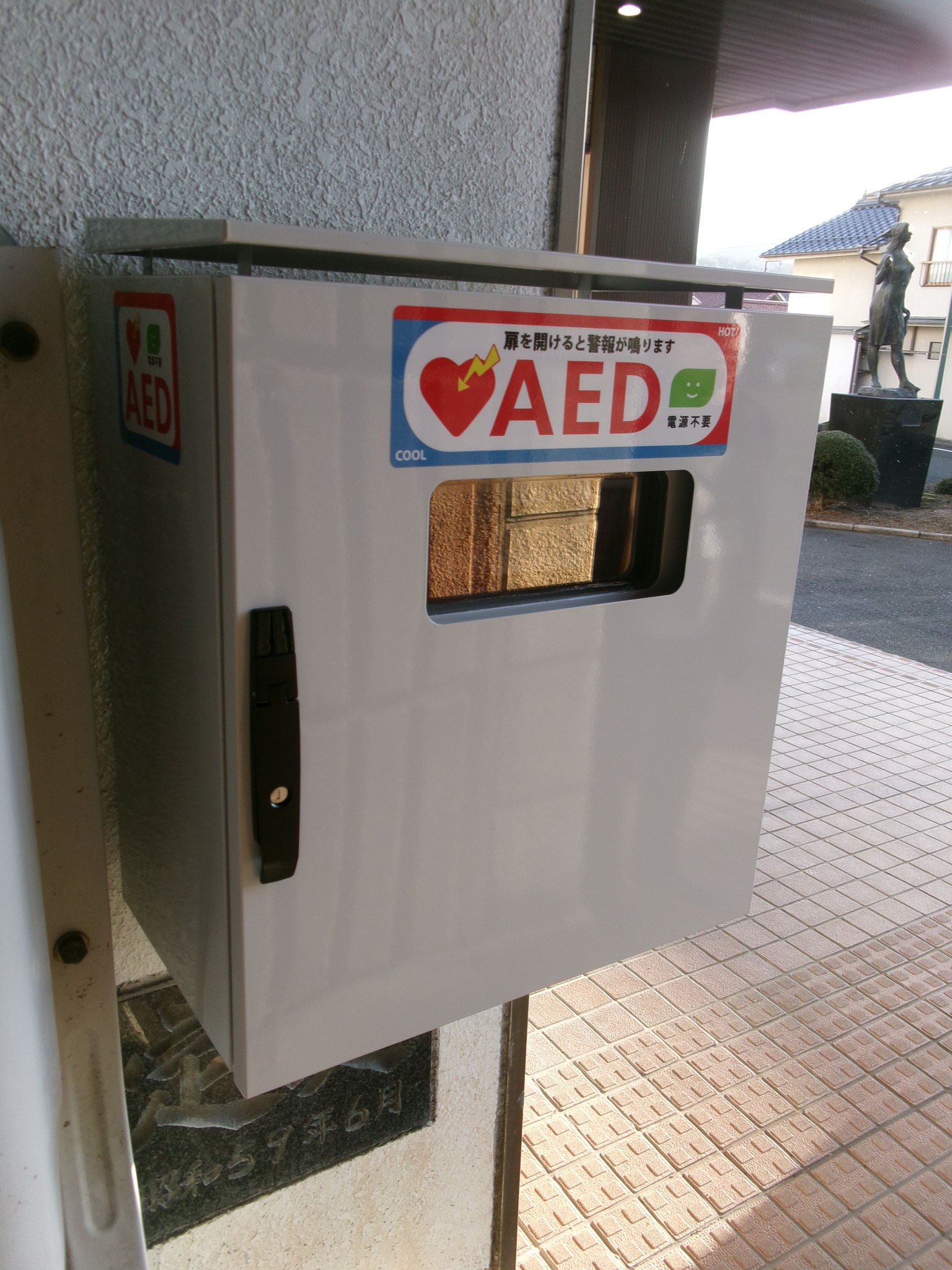 センター正面玄関横の外壁にAEDを設置しています。ご活用ください。