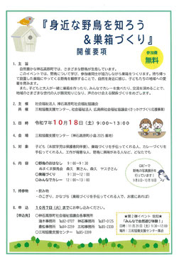 ★『身近な野鳥を知ろう&巣箱づくり』参加者募集★